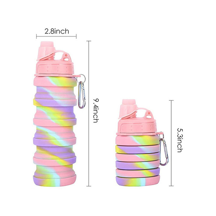 قمقمه سیلیکونی تاشو نارنجکی قابلیت جمع و یا باز شدن را دارد و دارای لبی اسان نوش و درب ضد نشتی نیز می باشد .قمقمه سیلیکونی تاشو نیم لیتر قابلیت نگه داری دمای سرد و گرم هست .مواد به کار رفته در سیلیکون BPA فاقد مواد مضر و سرطان زا از دیگر ویژگی های این قمقمه بسیار زیبا می باشد .قمقمه سیلیکونی تاشو نارنجکی مناسب تمامی افراد و دارای دستگیره برای حمل راحت تر و بهتر نیز هست .