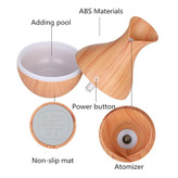 این دستگاه بخور و رطوبتساز یک اثر هنری منحصربهفرد است! طراحی زیبا آن به شما حس داشتن یک کوزه چوبی فانتزی و زیبا را میدهد این محصول از فناوری بیصدا استفاده میکند تا با ایجاد یک مه نرم دلپذیر محیطی آرام را برای شما فراهم کند. این دستگاه رطوبتساز را در محیطهایی مانند اتاق خواب، اتاق مطالعه، کافهها و رستورانها و… میتوان استفاده کرد. دستگاه بخور و رطوبتساز به همراه پخشکننده عطر دارای اتومایزر اولتراسونیک در داخل بستهبندی آن ارائه میشود که میتواند آب و اسانس عطر را در غبار ریز آب پراکنده و هوا را مرطوب و رایحهی دلپذیری را در محیط پخش کند. این دستگاه دارای نوری ملایم و بینظیر است که بهراحتی از طریق پنل کنار دستگاه قابل تنظیم است و میتواند به ایجاد فضایی دلنشین و آرامشبخش کمک کند. محصول نامبرده دارای عملکرد خاموشکننده هوشمند است و میتواند در زمان اتمام آب درون مخزن، به طور خودکار خاموش شود و استفاده از آن را ایمنتر میکند.