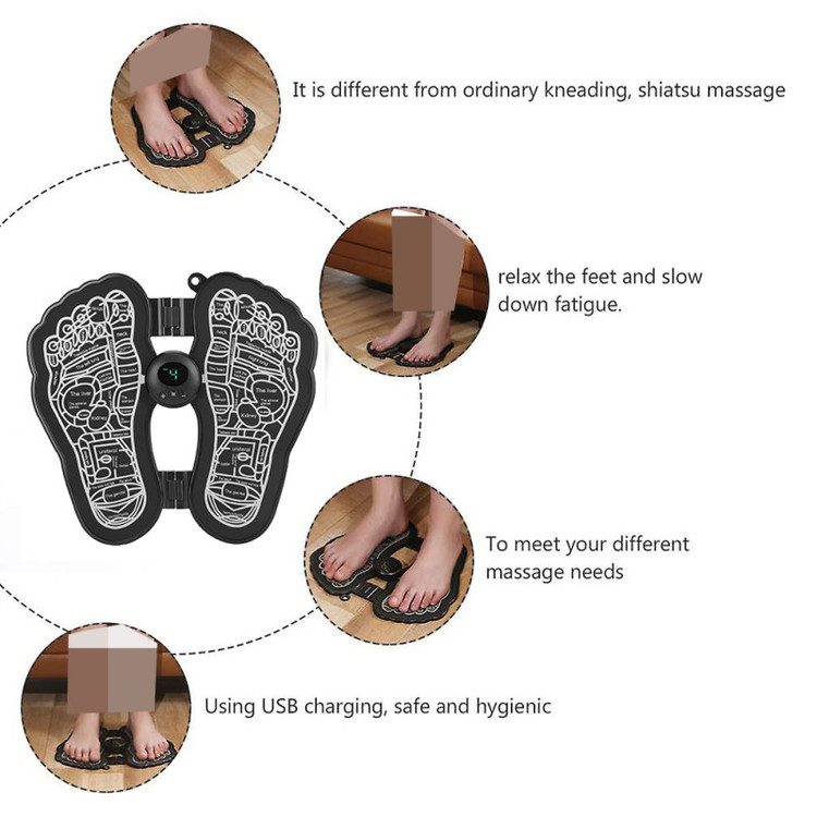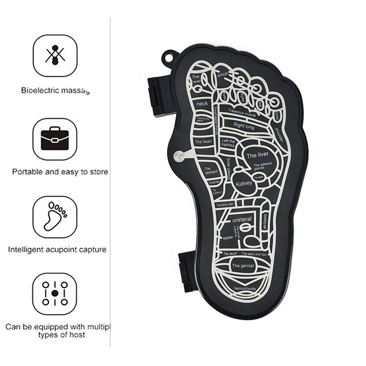 ماساژور پا هوشمند EMS بسیار باکیفیت یک صفحه پلاستیک فشرده و محکم که توسط باتری موجود در کنترل آن امواج مغناطیسی را به کف پای شما میفرستد. این باتری قابل شارژ است. و صفحه پلاستیکی کاملا تا میشود و به شکل یک پا در می آید.در عکس های محصول میتوانید مشاهده کنید.این محصول کف پا را به تخصصی ترین شکل ممکن ماساژ میدهد. این ماساژور تاشو بسیار سبک و قابل حمل می باشد. کنترل آن با کابل USB که بهمراه پد تقدیم شما میشود شارژ میشود. با کمک این پد بی صدا به آرامشی بی نظیر در کف پای خود خواهید رسید. چرا که این پد از کف پا با به گردش در آوردن خون در رگها و به حرکت در آوردن عصب ها پای شما را تا قسمت ران ها ماساژ خواهد داد. ماهیچه های خواب رفته و ضعیف را قوت میبخشد.