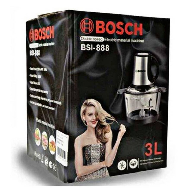 خردکن بوش مدل BSI-888 یکی از کاربردی ترین انواع خردکن های برقی تولید شده توسط برند آلمانی بوش می باشد . برند آلمانی بوش یکی از بهترین و شناخته شده ترین برندهای تولید کننده لوازم خانه و آشپزخانه می باشد که با تولید بهترین وسایل برقی توانسته است به یکی از پرطرفدارترین برندهای لوازم خانگی تبدیل شود . خردکن بوش مدل BSI-888 دارای گنجایش ۳ لیتر می باشد که می تواند مقدار مناسبی میوه و سبزیجات و یا هر ماده غذایی را در خود جای دهد و به اندازه دلخواه شما خرد و یا له کند . بدنه ظرف این خردکن از نوعی کریستال ساخته شده است که دارای دوام و استحکام بالایی می باشد . تیغه های تعبیه شده در این خردکن را از استیل ساخته اند که علاوه بر تیز و برنده بودن آنها ، ضد زنگ و ضدضربه نیز می باشند . خردکن بوش مدل BSI-888 دارای ۴ تیغه همزن می باشد که با وجود قابلیت تنظیم سرعت در این دستگاه می توانید میزان سرعت و خرد کردن این تیغه را کنترل کنید .
