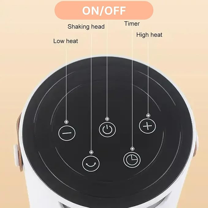 بخاری برقی سرامیکی برجی Heat R555 یک دستگاه ایستاده با طراحی استوانهای و مش خروجی مرکزی است که برای توزیع یکنواخت گرما در فضاهای داخلی طراحی شده است. بستهبندی شامل شعار "Quick & Easy Heat... Anywhere!" و آیکونهای USB، Portable و Energy Efficient است. دستگاه عملکرد نوسانی (Oscillation) دارد تا پوشش حرارتی گستردهتری فراهم کند.