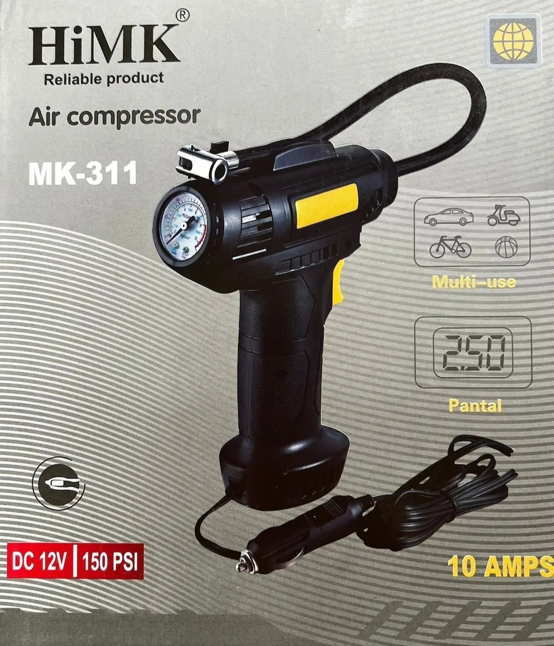 پمپ باد فندکی HiMK مدل MK-311 یک کمپرسور هوا/پمپ باد پرتابل (قابل حمل) است که با اتصال به فندکی خودرو (۱۲ ولت DC) کار میکند. این پمپ برای استفاده روزمره، همینطور مواقع اضطراری — مثلاً پنچری یا کاهش فشار باد لاستیک در مسیر — طراحی شده است.