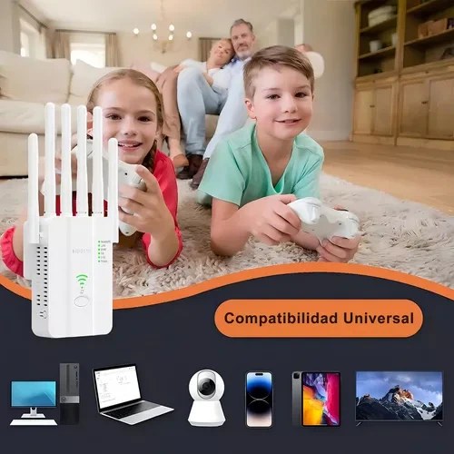 تقویتکننده سیگنال وایفای قدرتمند، توسعهدهنده برد جهانی، توسعهدهنده برد بیسیم با WPS، توسعهدهنده برد وایفای، ۶ آنتن، تقویتکننده سیگنال قوی، پوشش بالای ۳۰۰ مگابیت بر ثانیه، تکرارکننده بیسیم ۲.۴ گیگاهرتز